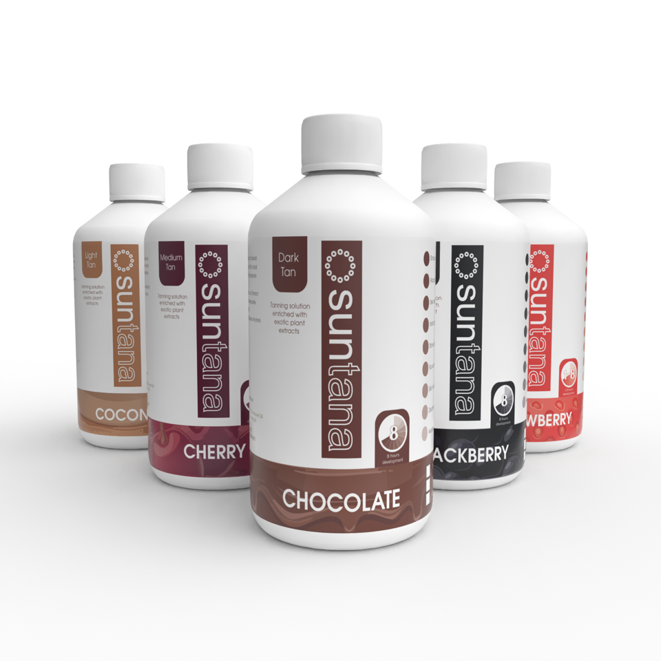 5 x 100 ml Proben von Spray Tan (5 verschiedene Farbtöne). Genug für mindestens 5 x Vollanträge.